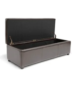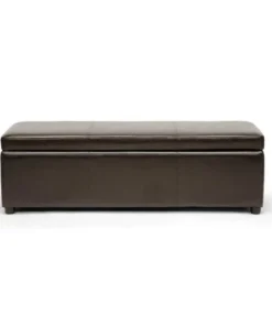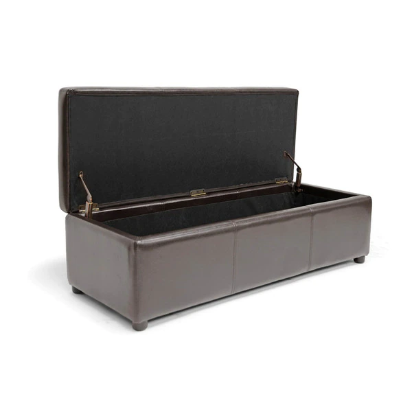 A great accompaniment to a sofa or a fantastic stand-alone item, our Dennehy Dark Brown Modern Ottoman offers contemporary style with old-school attention to craftsmanship. Hard to believe so much value can be had at a discount price. Soft-cornered upholstery and round legs combine for a cozy appearance. A kiln-dried hardwood frame gives it rugged endurance. Plus, plenty of storage and two black flip-top trays.