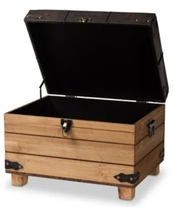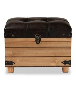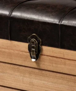 Baxton Studio Edmund Transitional Dark Brown Faux Leather Upholstered and Oak Brown Finished Wood Storage Ottoman