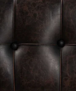 The Edmund storage ottoman solves your storage needs with a rustic yet handy design. Made in China, this ottoman is comprised of a sturdy wood frame featuring an oak brown finish that lends a rustic feel. Its button tufted cushion is padded with plush foam and upholstered in smooth faux leather, creating a cozy footstool or extra seat when needed. Fully assembled, the top of the Edmund opens to reveal ample storage space for extra blankets, pillows, and more. Antique brass finished metal handles and a latch add a vintage touch, making the Edmund ottoman a fantastic addition to any space.
