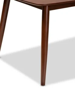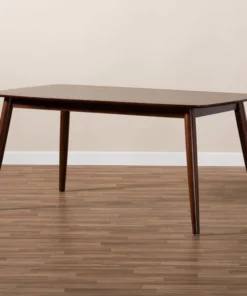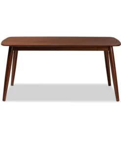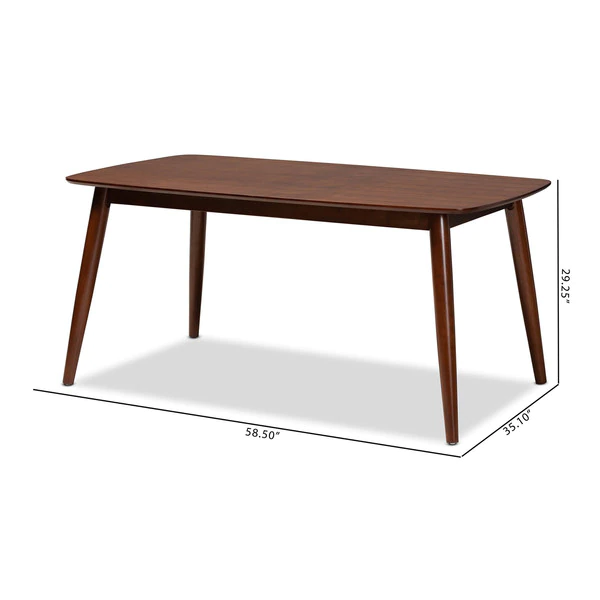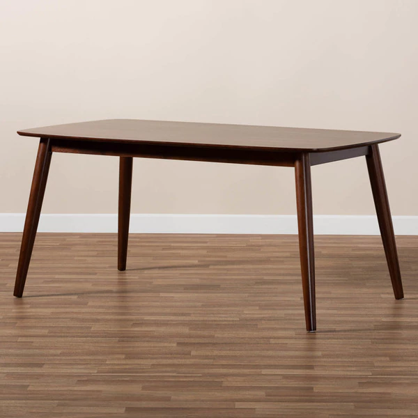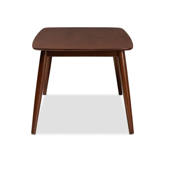 An inviting design that shifts shape to suit the occasion, the Flora dining table features a contemporary profile formed from soft curves and angled lines. Designed to seat four to six guests, the rounded edges and walnut veneered surface of the tabletop are made of solid rubberwood to create a modern look that works in any space. The legs are set at an angle, giving the table a distinctive silhouette that pairs well with modern dining chairs. The Flora dining table requires assembly.