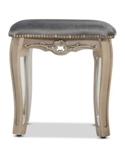 Inject a dazzling accent of modern glamour to your space with the Elgin stool. Made in China, this stool is comprised of a brushed silver finished wood frame topped with plush foam padding and upholstered in smooth velvet fabric. Cabriole legs provide excellent stability, while mirrored glass accents catch and reflect light in dazzling fashion. The Elgin will arrive fully assembled and features an antique brass nailhead trim that outlines the compact stool with a charming allure. Elegant molding further distinguishes the Elgin stool as a lavish complement to any space.