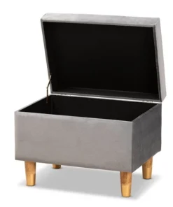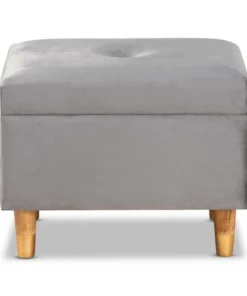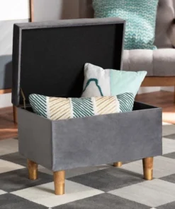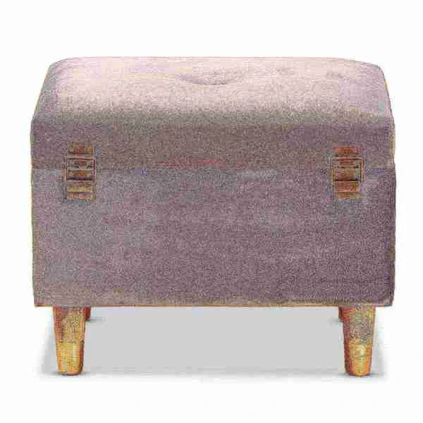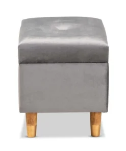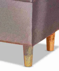 Accent your space with the glamorous seating and handy storage of the Elias ottoman. Made in China, the Elias is comprised of a sturdy wood frame padded with foam and upholstered in smooth velvet fabric. Its lift up top reveals storage space for extra blankets and linens. Requiring assembly, the Elias sits on tapered, oak finished wood legs for a chic, modern look. Button tufting and antique brass finished metal latches lend an elegant touch, making the Elias ottoman a distinctive addition to any space.