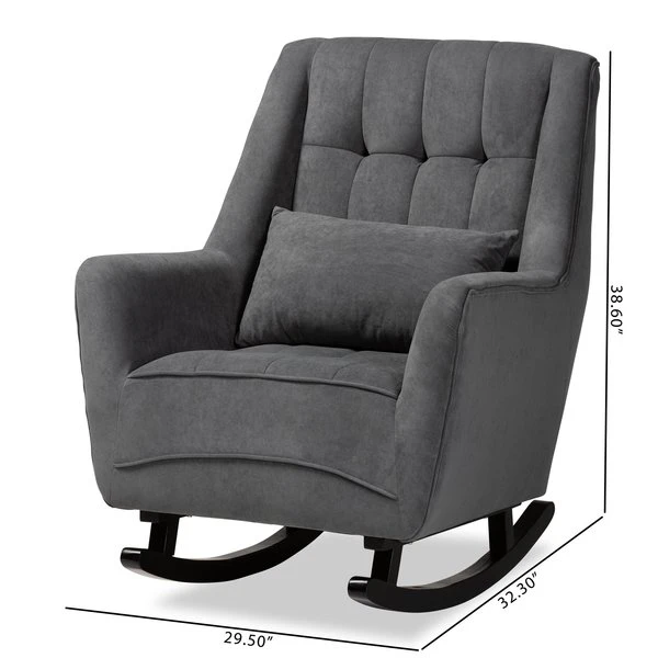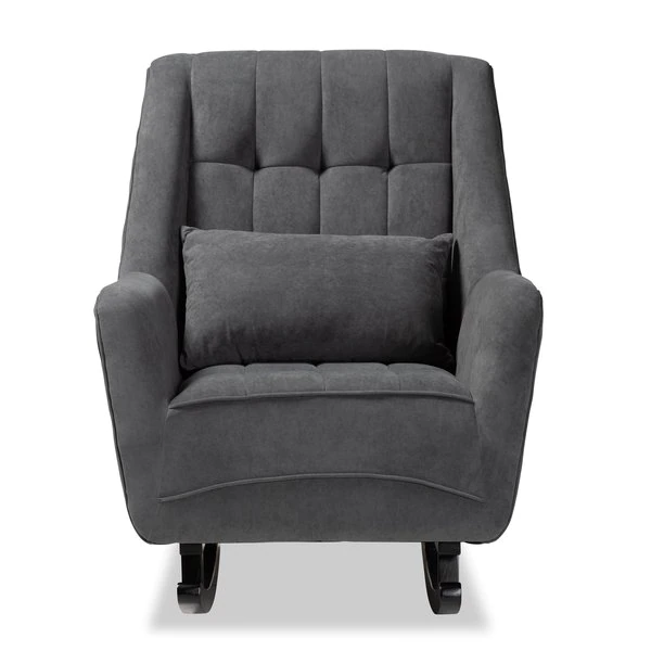 Baxton Studio Elisa ModernGrey Fabric Upholstered and Dark Brown Finished Wood Rocking Chair