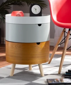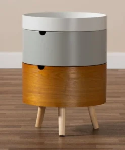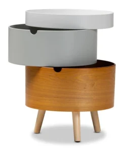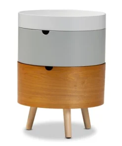 Add charming retro style to any bedside with the Elison nightstand. Built as a unique system of stackable units, the Elison features two storage compartments for all your bedside knick-knacks. The top of the nightstand is fitted with a removable tray, ideal for keeping phones and items secure. Each compartment showcases a different finish for a fun, quirky vibe. Angled wood legs add a stylish mid-century feel. The Elison requires assembly.