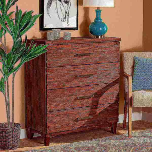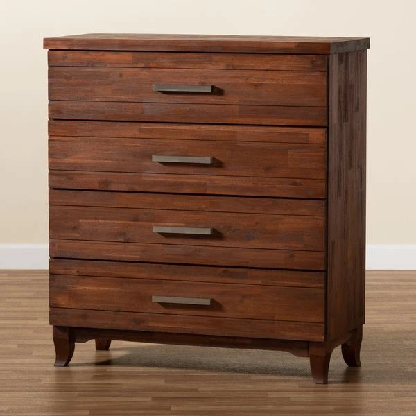 Rich wood tones are on display with the versatile Ella chest. Made in Malaysia, the Ella is constructed from sturdy wood finished in a warm oak brown hue. Four drawers provide excellent storage space to organize clothes, linens, and more. Fully assembled, each drawer is fitted with a sleek silver tone metal handle for easy access. Inset paneling adds texture and depth, while cabriole legs lend a touch of elegance. A handy piece that adds quality storage to any room, the Ella chest is a fantastic addition to the modern home.