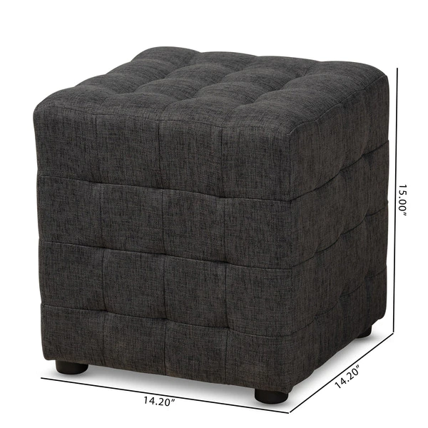 Stylish and versatile, the Elladio ottoman is easy to incorporate into any room in the home. Embodying modern design, the ottoman features a cube silhouette complemented by biscuit tufting on all sides. Its wooden frame is upholstered in soft, durable polyester fabric for endless comfort. Black plastic feet complete the look. This multipurpose piece can be used as a seat, footstool, or casual table. The Elladio ottoman will arrive fully assembled.
