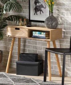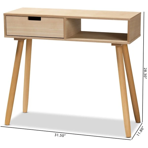 Baxton Studio Elwyn Mid-Century Light Brown Finished Wood 1-Drawer Console Table