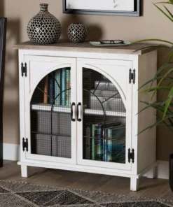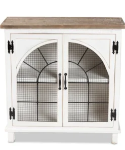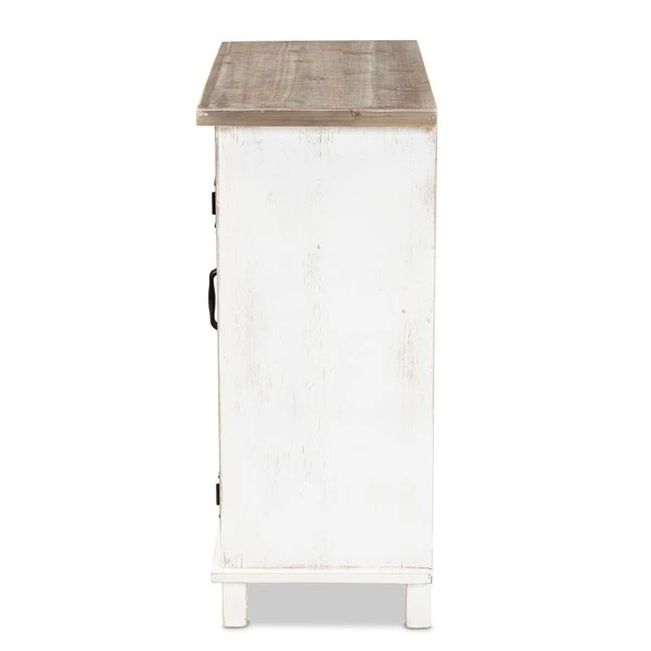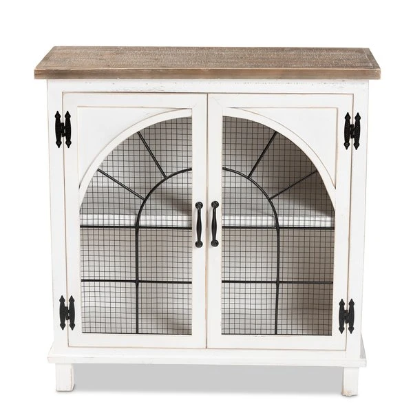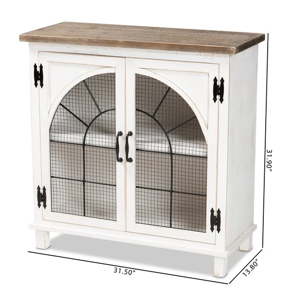 Baxton Studio Faron Traditional Farmhouse Two-Tone Distressed White Finished Wood 2-Door Storage Cabinet