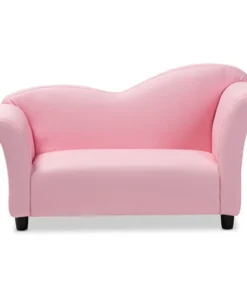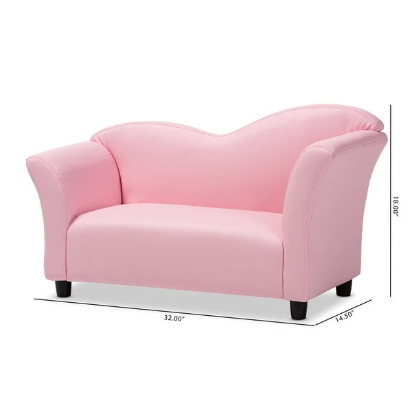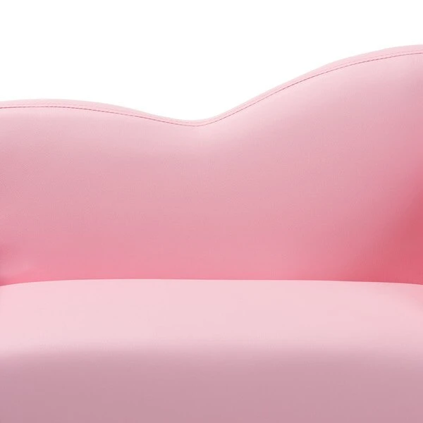 Personalize your little one's space with the comfortable and stylish Felice loveseat. Constructed from wood for durability, the Felice Loveseat is upholstered in pink faux leather for luxe appeal. High-density foam padding and armrests ensure a high level of comfort during those Disney movie marathons. The curvy back and flared arms add stylish flair to your little one’s space. This loveseat is sure to become your little one’s favorite spot as they read books, watch TV, and relax with friends. The Felice loveseat requires leg assembly.