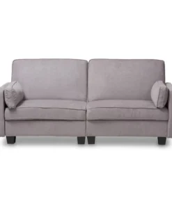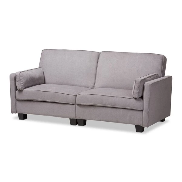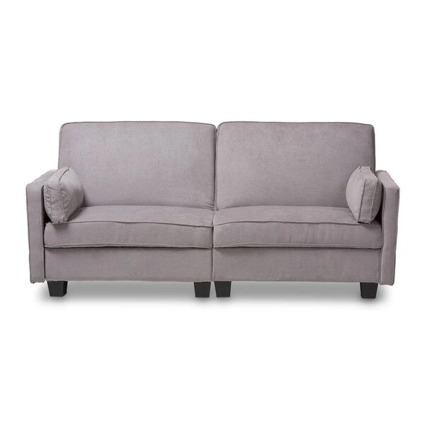 Space is at a premium these days, but with the Felicity sleeper sofa, you can still entertain and host guests in style. The modern and contemporary-inspired design is evident in the clean lines and rounded edges of the sofa. The Felicity is upholstered in a pleasant light gray fabric, and is foam-padded for comfort. The 2-seater sofa easily pulls-out to become a bed, providing sleeping space for guests and sleepovers. The Felicity comes with two matching pillows. The comfortable seating and modern look of the sofa make it a great addition to your livingroom or spare room. The Felicity requires assembly.