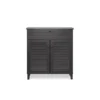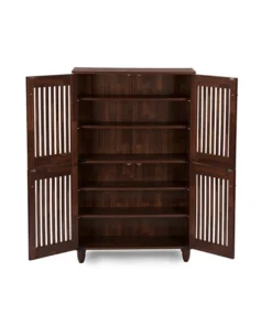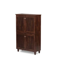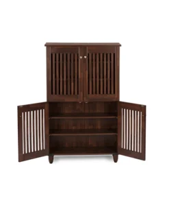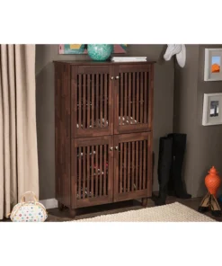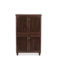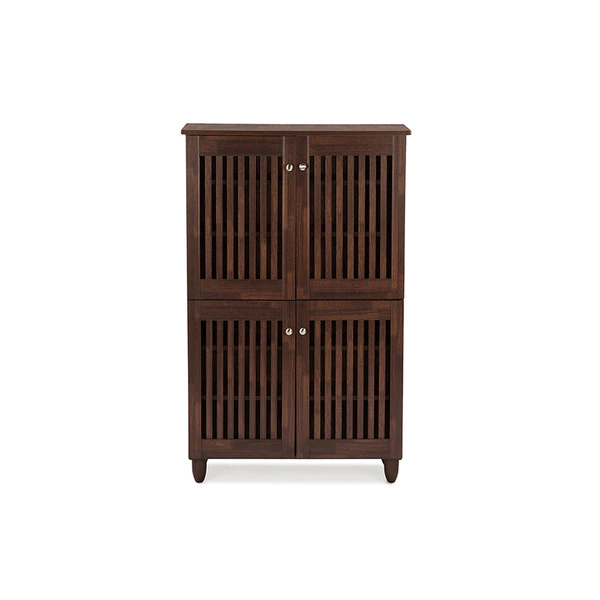This smartly-designed shoe cabinet, from the esteemed house of Baxton Studio, does not occupy too much floor space as it is tall and spacious. Simple and elegant design make this one of those pieces of furniture that is easy to complement. Perfect for families and people how have a fetish for footwear, the shoe cabinet can accommodate up to eighteen pairs of shoes in the tall cabinet with two of its fixed shelves behind each door. To match your modern and contemporary home decor, the doors come with silver handle pulls for your convenience. The slatted doors allow air circulation, which is essential for the storage of shoes helping to keep them mold free. The shoe storage cabinet requires assembly. -Made of engineered wood -Has oak brown finish -Has four doors and six shelves on the 4-door unit; three bigger shelves and three smaller shelves in the 3-door unit -The door has metal handles for easy opening and closing -Doors have a magnetic closing system -Legs are made of PVC -Can hold up to 18 pairs of shoes in the 4-door cabinet and 12 pairs of shoes in the 3-door cabinet -Assembly required -Overall dimension: 4-door cabinet- 48.62 "H X 30.24" W X 13.23"D; 3-door cabinet-26.57" H X 44.88"W X 13.23" D -Shipping dimension: 4-door cabinet – carton 1: 4X47X16–36lbs; carton 2: 5"X32"X15"–40lbs 3-door cabinet – 5X47X16–55lbs