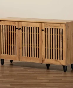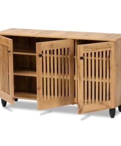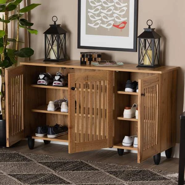 Baxton Studio Fernanda Modern and Contemporary Oak Brown Finished Wood 3-Door Shoe Cabinet