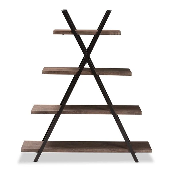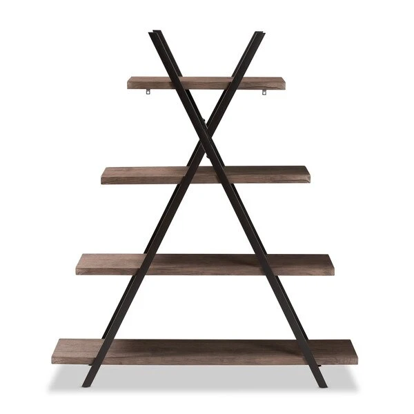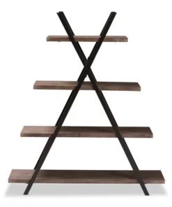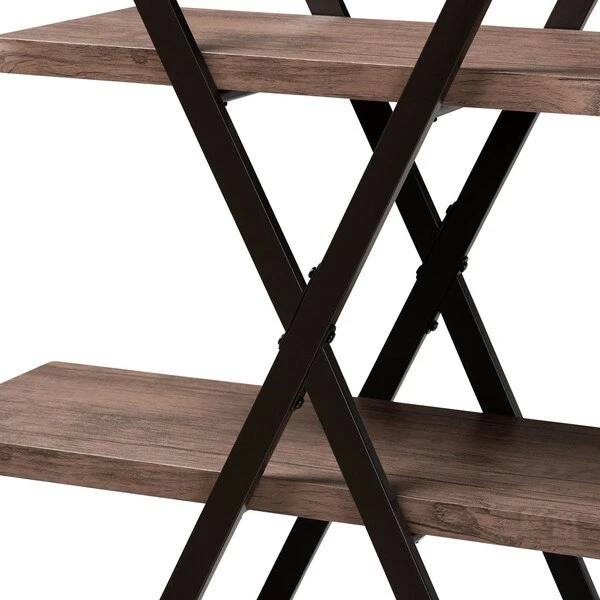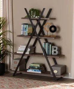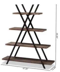 Enhance your book collection by displaying it on the stylish Fiera shelf. This wooden piece features rustic walnut finished shelves that complement the black metal frame. Four shelves, of varying lengths, provide ample display space and lend visual interest. The crisscross frame provides solid support and adds a cool, industrial vibe. Requiring assembly, the Fiera shelf livens up any living room or home office.