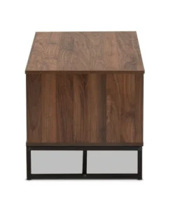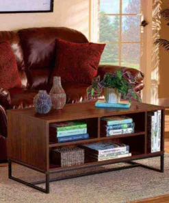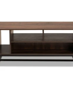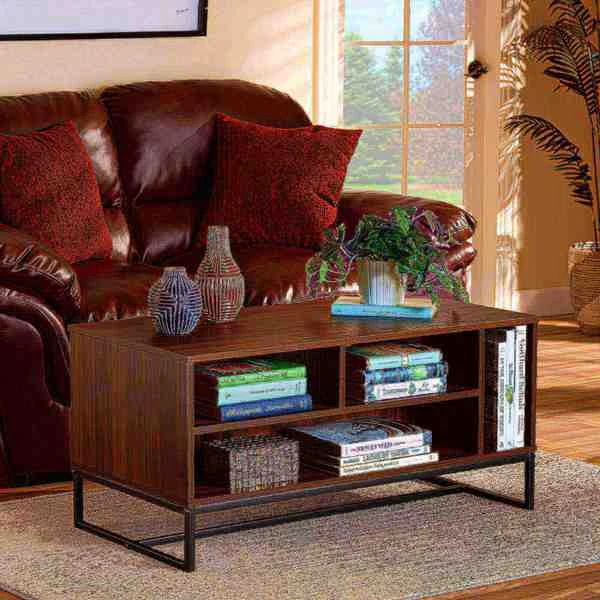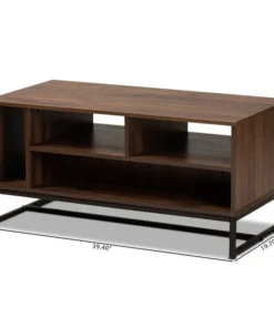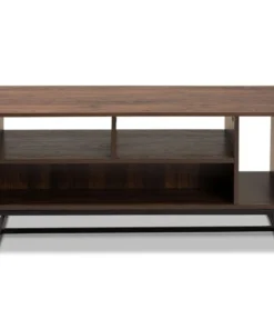 Add geometric intrigue to your space with the Flannery coffee table. Made in Malaysia, the Flannery is constructed from sturdy wood showcasing a warm walnut brown finish. Five open shelves of various sizes provide ample surface area to store books, movies, and decorations. Requiring assembly, the Flannery is supported by black finished metal legs that provide excellent stability and a clean, modern look. Convenient storage capacity and unique style make the Flannery coffee table a fantastic addition to the modern home.