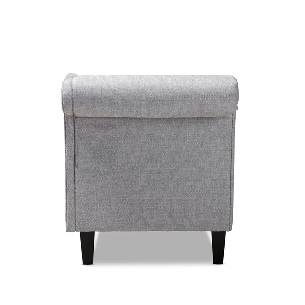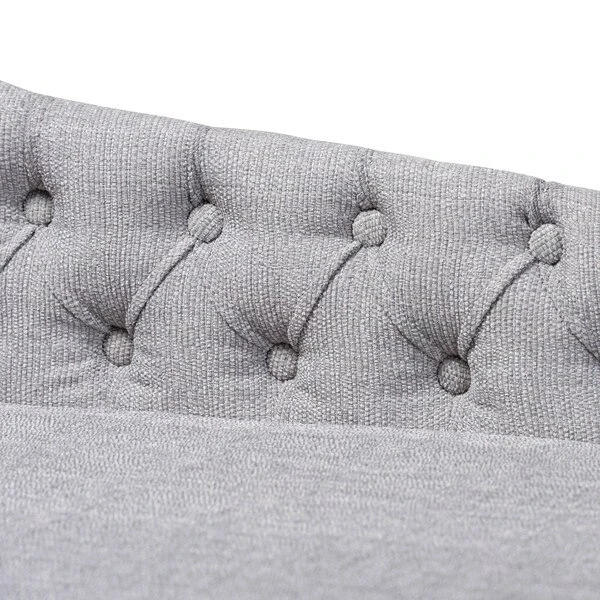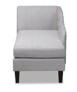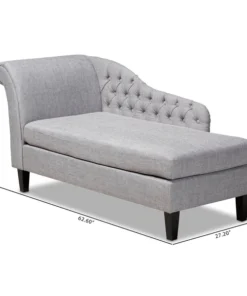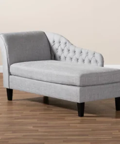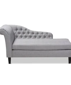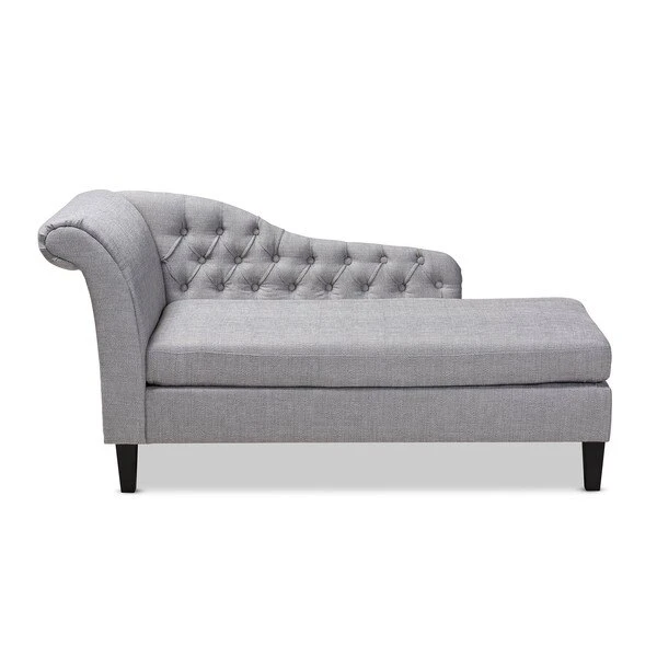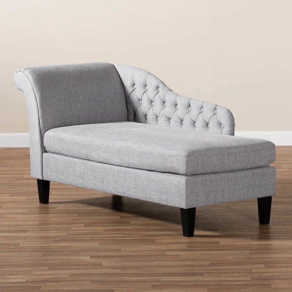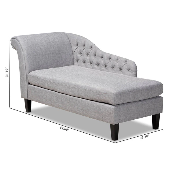 Lounge like royalty with the Florent chaise. This Victorian-inspired chaise features a graceful scroll back and single arm with lavish button tufting. Designed to add both elegance and function to your space, the Florent is crafted from sturdy wood and upholstered in a soft, foam filled fabric for the utmost relaxation. The chaise is set on top of tapered, black finished legs, adding a modern twist to this classic chaise. The Florent chaise requires assembly.