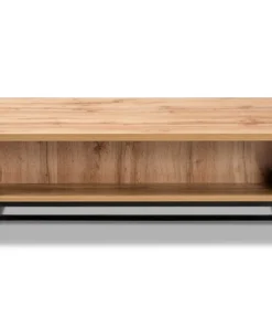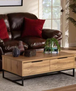 Add convenient storage to your space with the modern charm of the Franklin coffee table. Made in Malaysia, the Franklin is constructed from sturdy wood showcasing a natural oak brown finish. Two spacious drawers, along with an open shelf on the opposite side, provide handy storage for books, movies, and decorations. Requiring assembly, the Franklin is supported by black finished metal legs for excellent stability. A practical and versatile addition, the Franklin coffee table adds stylish utility to any space.