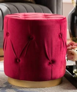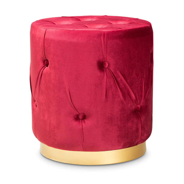 Spruce up any corner in your home with the glamorous Gaia ottoman. Padded with foam for the utmost comfort, the Gaia is upholstered in a sleek velvet fabric that feels exceptionally soft. Button tufting highlights the rich tones in the velvet, while the striking gold-tone finish on the based adds a touch of luxury. Use this versatile piece as a footstool or as extra seating. The Gaia ottoman will arrive fully assembled.
