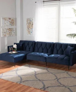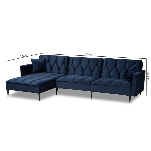 With a stunning silhouette and plush cushions, the Galena sofa strikes an impeccable balance between style and comfort. Made in Malaysia, the Galena is comprised of a sturdy wood frame padded with thick layers of soft foam and upholstered in smooth velvet fabric. A striking pattern of geometric tufting imbues the Galena with eye-catching visuals while ensuring a supportive and relaxing experience. Requiring assembly, the sofa features a fold down back that creates a convenient resting place for overnight guests. Black tapered legs lend contemporary style, making the Galena sofa a superb addition to the modern home.