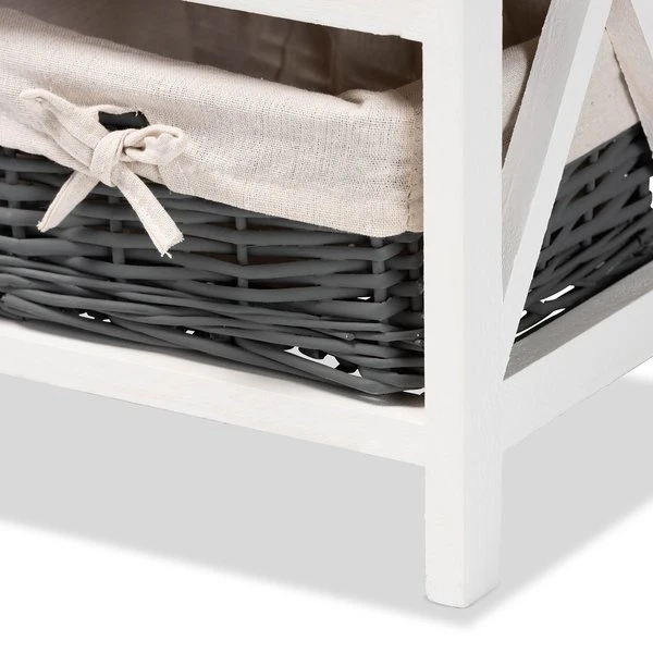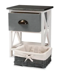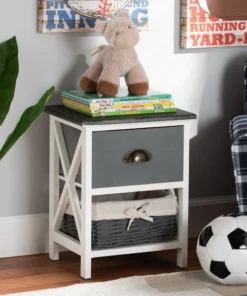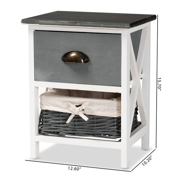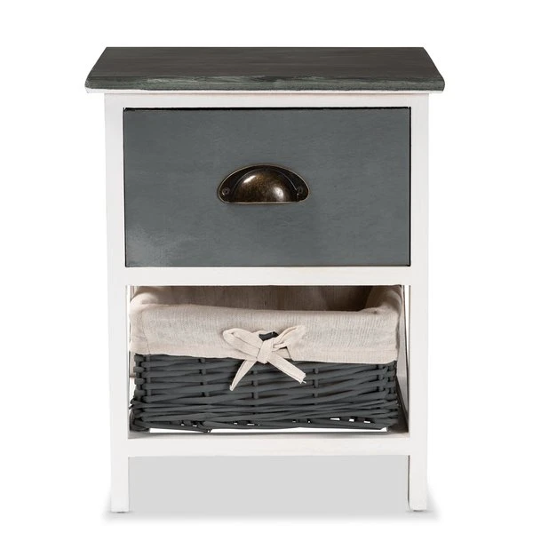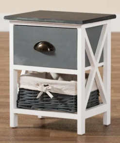 Baxton Studio Garridan ModernTwo-Tone Grey and White Finished Wood 1-Drawer Storage Unit with Basket