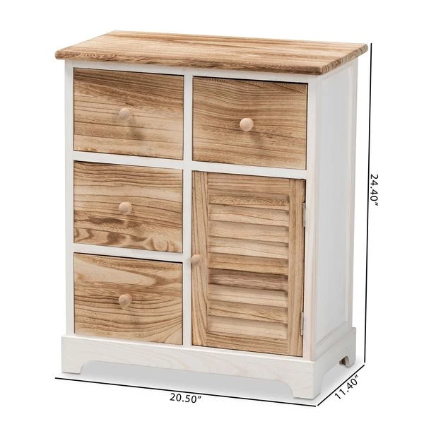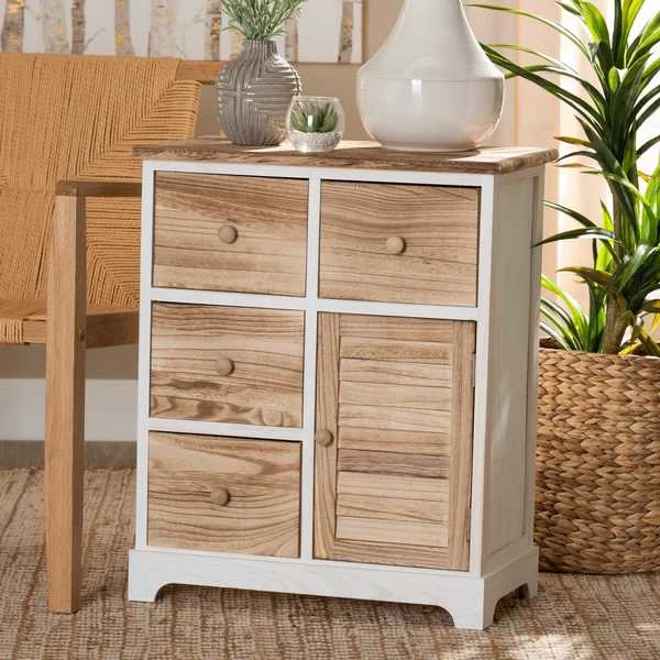 Baxton Studio Gella Rustic Transitional Two-Tone White and Oak Brown Finished Wood 4-Drawer Storage Unit