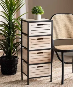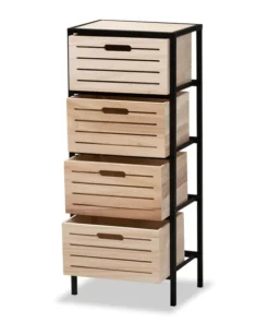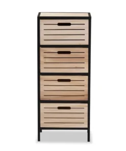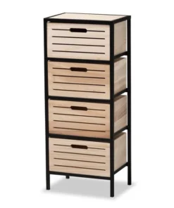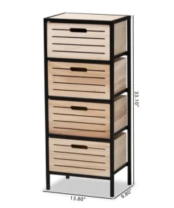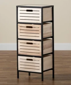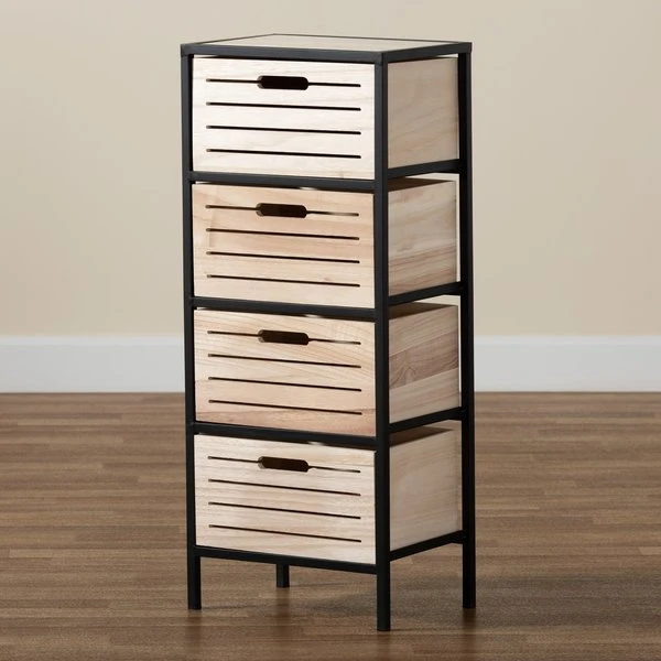 Baxton Studio Gelsey Modern Industrial Oak Brown Finished Wood and Black Metal 4-Drawer Storage Cabinet