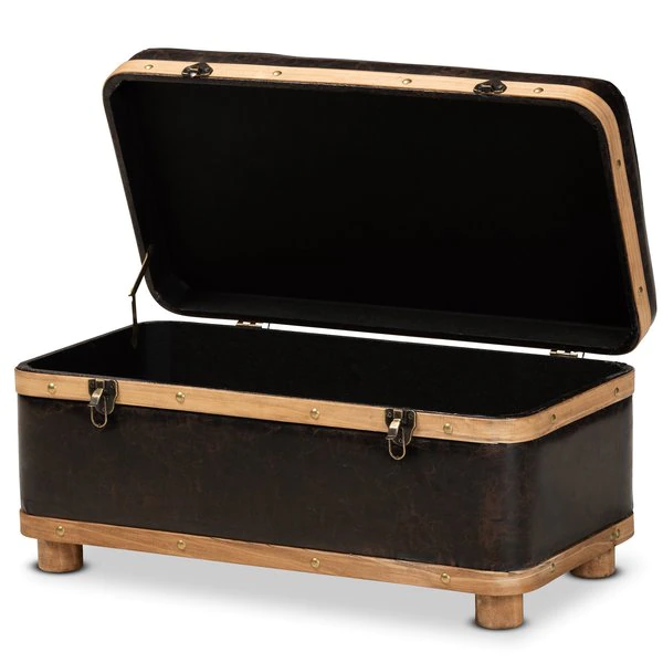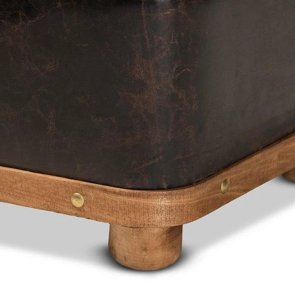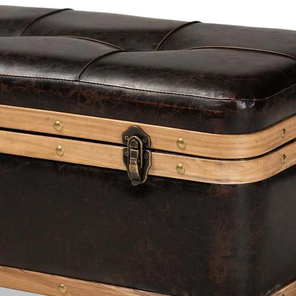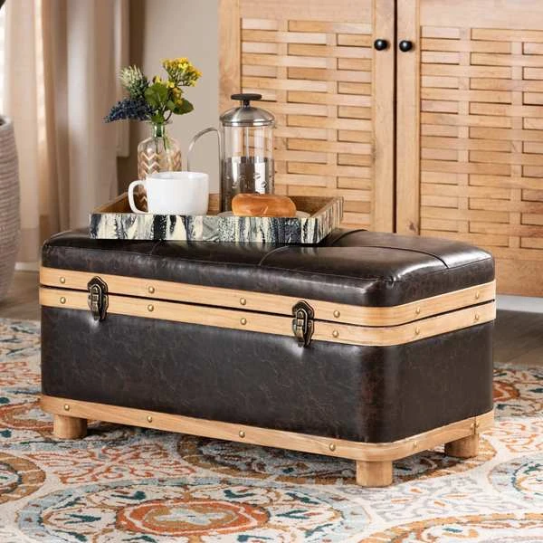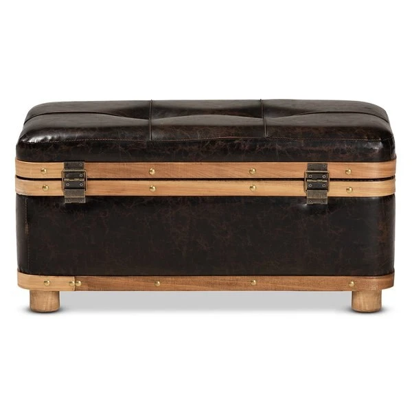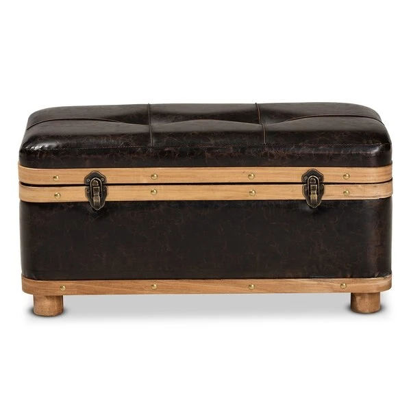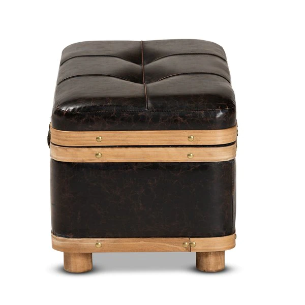 Baxton Studio Gendry Modern Rustic & Transitional Dark Brown Faux Leather Upholstered Small Wood Storage Ottoman