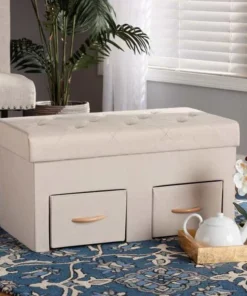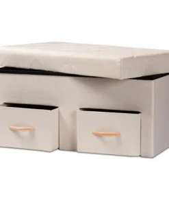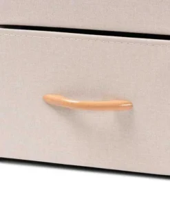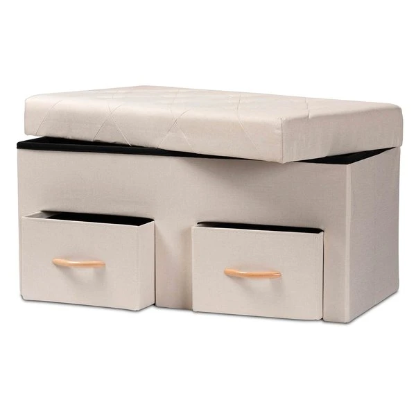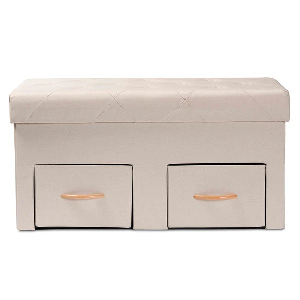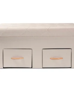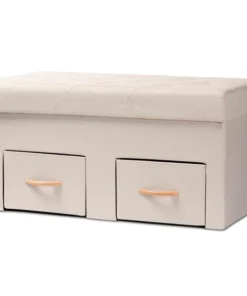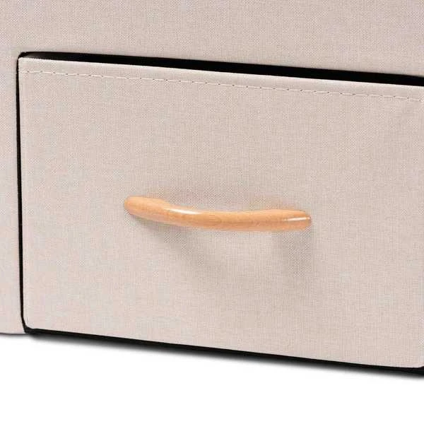 Baxton Studio Gerwin ModernBeige Fabric Upholstered and Oak Brown Finished Wood 2-Drawer Storage Ottoman
