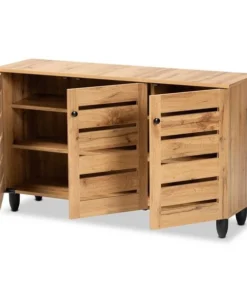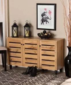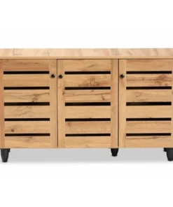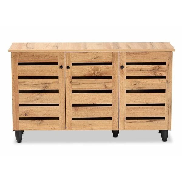 Baxton Studio Gisela Modern and Contemporary Oak Brown Finished Wood 3-Door Shoe Storage Cabinet