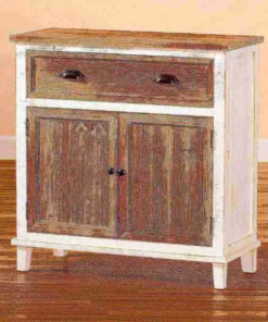 A natural color palette and convenient utility make the Glynn cabinet a fantastic addition to any kitchen or dining room. Made in China, the Glynn is comprised of a wood frame showcasing a lightly weathered two-tone white and oak brown finish for an aged look. One drawer and a compartment behind two doors provide ample storage space to help organize busy areas. Fully assembled, the Glynn is accented with black finished metal handles for a touch of modern charm. A handy piece that easily blends in with modern room layouts, the Glynn cabinet easily upgrades any space.