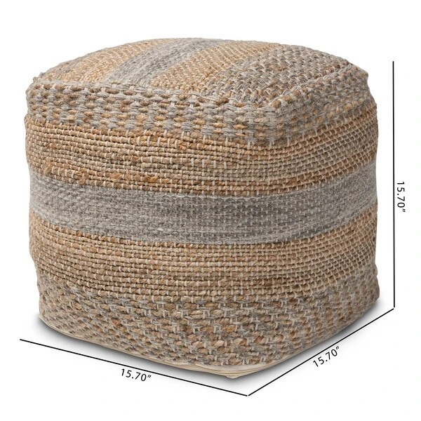 Add a cozy, bohemian touch to any space with the Grange pouf. Handwoven from wool fabric and hemp, the Grange features an understated blend of natural and grey tones. These distinctive colors highlight the various patterns woven into the pouf. The Grange can be used as a seat, footstool, or casual coffee table.