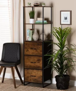 Baxton Studio Hakan Modern Industrial Walnut Brown Finished Wood and Black Metal 3-Drawer Storage Cabinet