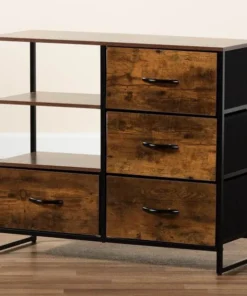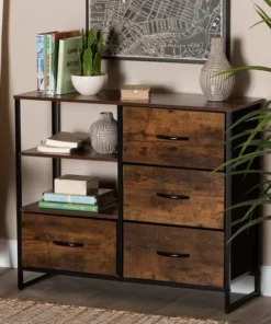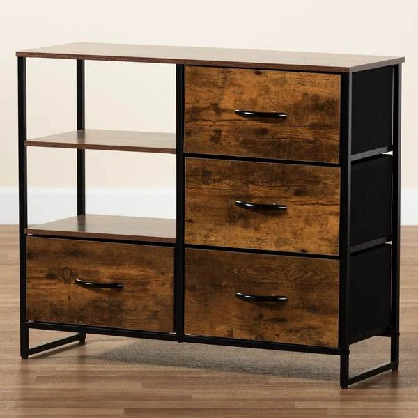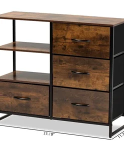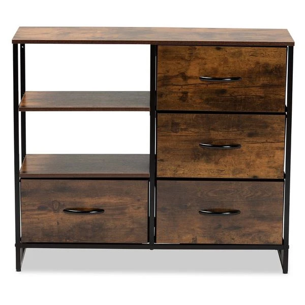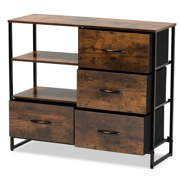 Baxton Studio Hakan Modern Industrial Walnut Brown Finished Wood and Black Metal 4-Drawer Storage Cabinet