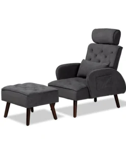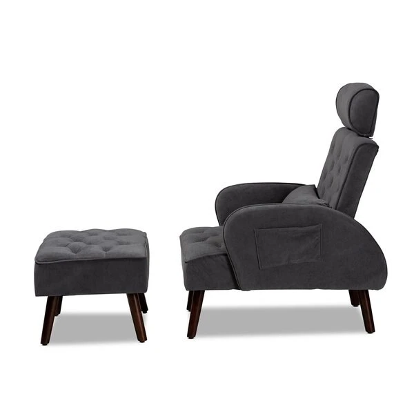 The inviting design of the Haldis chair and ottoman set gives your home a cozy spot to relax and take it easy. Made in China, this set includes one recliner chair and one ottoman made from sturdy wood and upholstered in luscious velvet fabric. The chair features reclining capability for maximum comfort while a convenient side pocket offers space for remotes, books, and more. Requiring assembly, the Haldis radiates contemporary personality with an elegant diamond-tufted design. A delightful and visually stunning addition, the Haldis chair and ottoman set enhances the modern interior.
