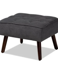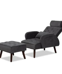 Baxton Studio Haldis Modern Grey Velvet Upholstered and Walnut Brown Finished Wood 2-Piece Lounge Set