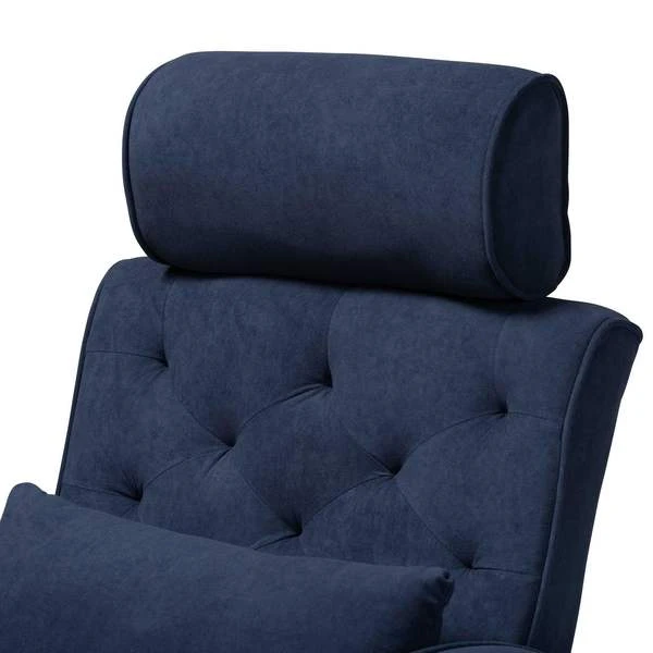 Baxton Studio Haldis Modern Navy Blue Velvet Upholstered and Walnut Brown Finished Wood 2-Piece Lounge Set