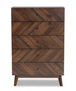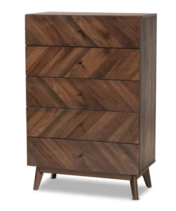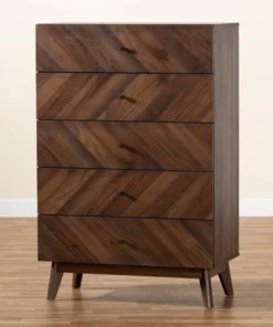 Baxton Studio Hartman Mid-Century Walnut Brown Finished Wood 5-Drawer Storage Chest