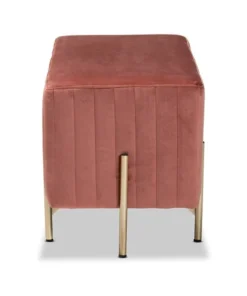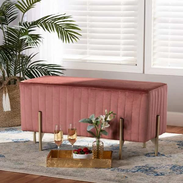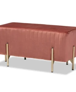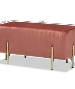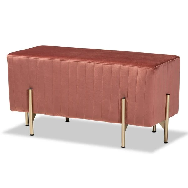 Baxton Studio Helaine Contemporary Glam and Luxe Blush Pink Fabric Upholstered and Gold Metal Bench Ottoman