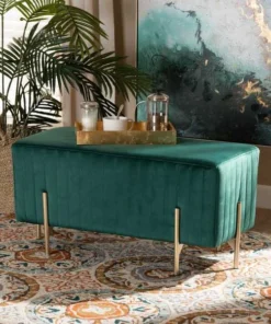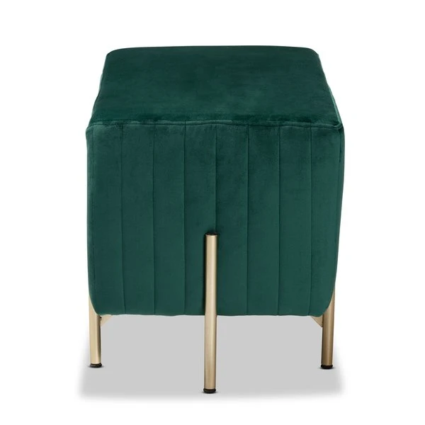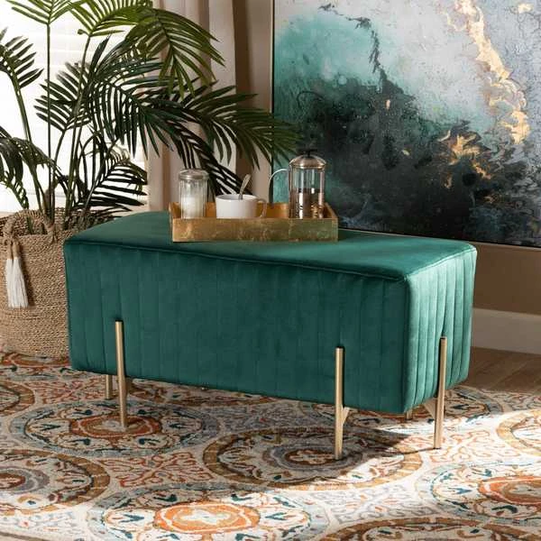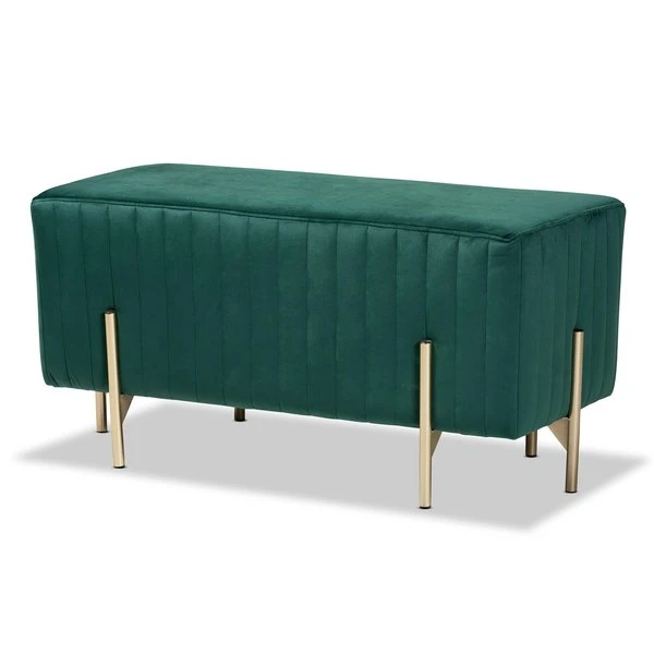 Baxton Studio Helaine Contemporary Glam and Luxe Green Fabric Upholstered and Gold Metal Bench Ottoman