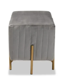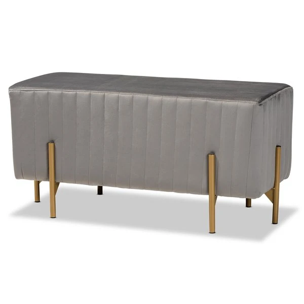 Baxton Studio Helaine Contemporary Glam and Luxe Grey Fabric Upholstered and Gold Metal Bench Ottoman