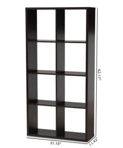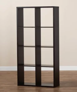 Display your favorite objects on the Janne shelf. Constructed from wood, the Janne features a dark brown finish for a refined look. Eight shelves provide space to display books, decor, and more. This versatile piece is well suited for a living room or home office. The Janne shelf requires assembly.
