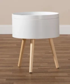Add cool, quirky style to your bedroom with the Jessen nightstand. The Jessen features a removable tray top, ideal for keeping phones and other items secure. When removed, the top reveals a spacious storage compartment for all the bedside essentials. Functional and stylish, the Jessen showcases a sleek neutral finish that is complimentary to a wide range of color palettes. Angled wood legs add a stylish mid-century feel. The Jessen nightstand requires assembly