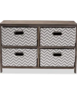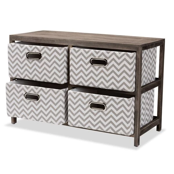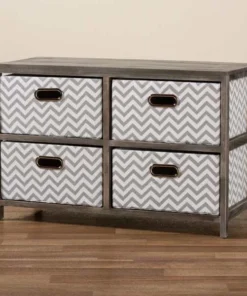 Baxton Studio Jorah ModernGrey and White Fabric Upholstered Greywashed Wood 4-Basket Storage Unit