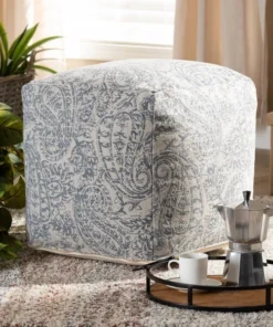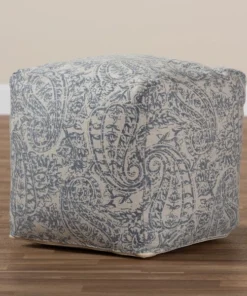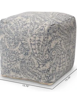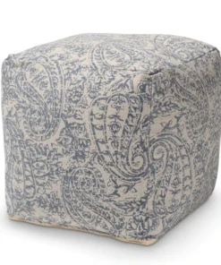 Add a cozy, modern touch to any space with the Juvita pouf. Handwoven from cotton canvas and polyester net, the Juvita features an elegant blend of grey and blue tones. A stylish paisley print compliments the understated color palette. This versatile piece can be used as a seat, footstool, or casual coffee table.