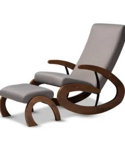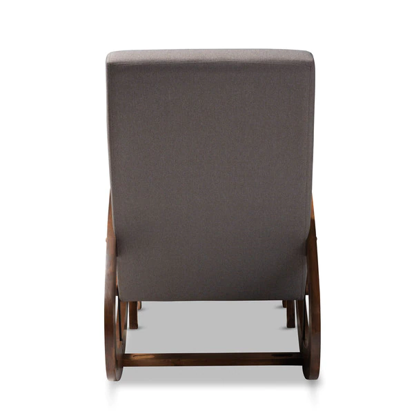 Rock your little one to sleep in style with the Kaira rocking chair and ottoman. Designed with the utmost comfort in mind, this solid rubberwood chair features a tall back and wide seat filled with high-density foam. Large spiral-shaped rockers provide smooth motion and add bold visual interest to your nursery. A rich walnut finish on the rockers are paired with soft, neutral polyester fabric upholstery for easy coordination with any color palette. A matching ottoman completes the look. The Kaira rocking chair requires assembly.