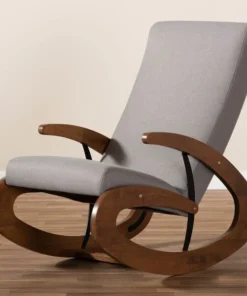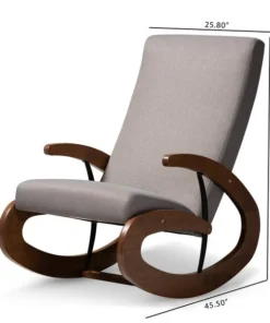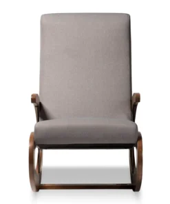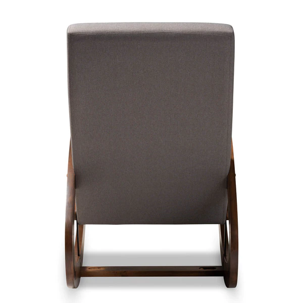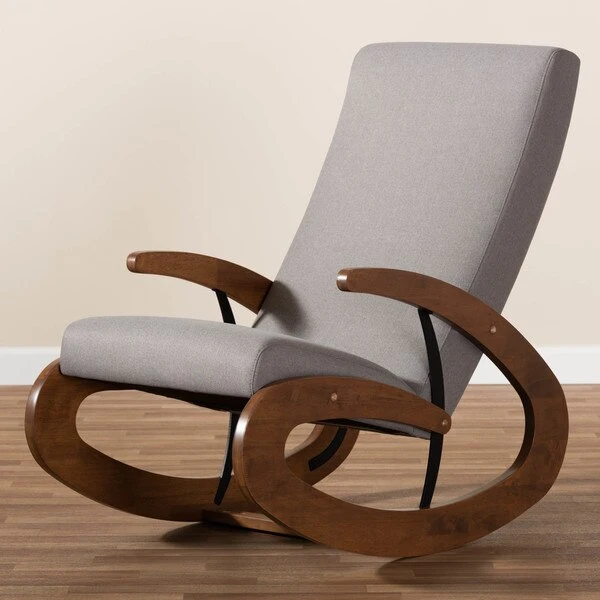 Rock your little one to sleep in style with the Kaira rocking chair. Designed with the utmost comfort in mind, this solid rubberwood chair features a tall back and wide seat filled with high-density foam. Large spiral-shaped rockers provide smooth motion and add bold visual interest to your nursery. A rich walnut finish on the rockers are paired with soft, neutral polyester fabric upholstery for easy coordination with any color palette. The Kaira rocking chair requires assembly.