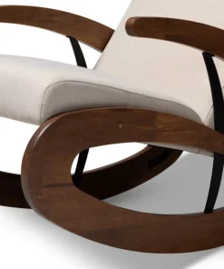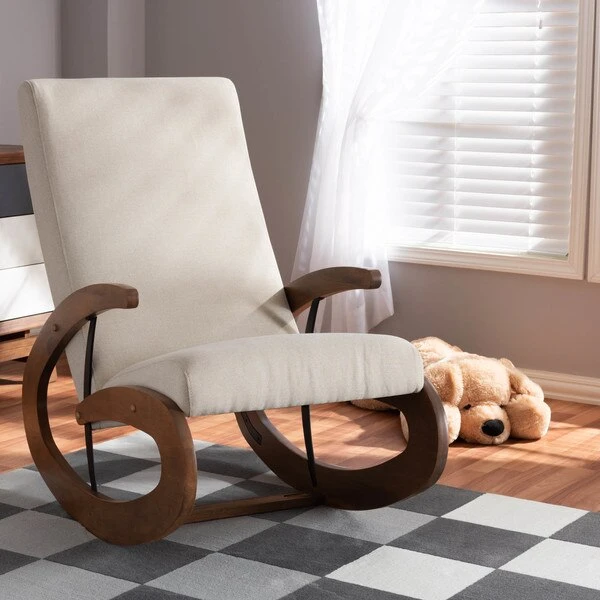 Rock your little one to sleep in style with the Kaira rocking chair. Designed with the utmost comfort in mind, this solid rubberwood chair features a tall back and wide seat filled with high-density foam. Large spiral-shaped rockers provide smooth motion and add bold visual interest to your nursery. A rich walnut finish on the rockers are paired with soft, neutral polyester fabric upholstery for easy coordination with any color palette. The Kaira rocking chair requires assembly.