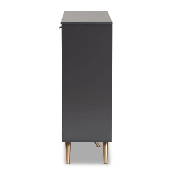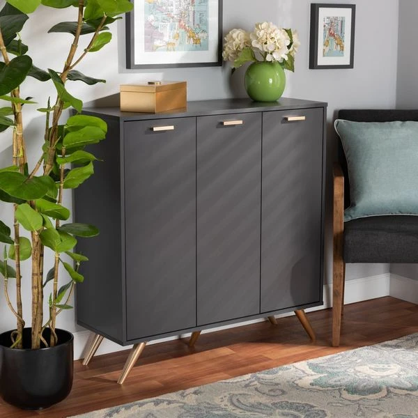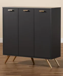 Baxton Studio Kelson Modern and Contemporary Dark Grey and Gold Finished Wood 3-Door Shoe Cabinet