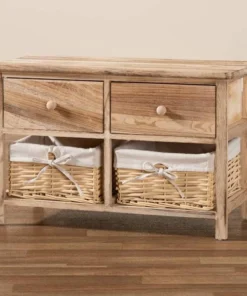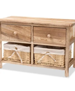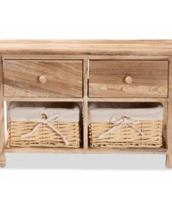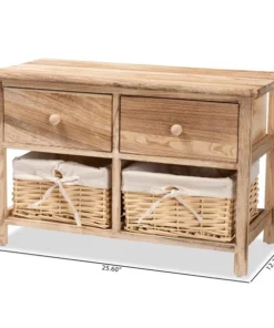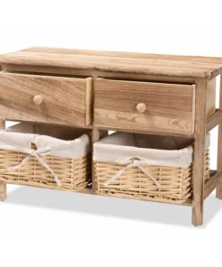 Baxton Studio Kenwood Rustic and Contemporary Oak Brown Finished Wood 2-Drawer Storage Unit with Woven Baskets