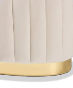 Accent your space with the glamorous design of the Kirana ottoman. Made in China, the Kirana is comprised of a solid wood frame padded with a lavish layer of foam and upholstered in smooth, sumptuous velvet fabric. Incredibly soft to the touch, channel tufting lends stunning visual appeal and accentuates its plush exterior. Fully assembled, the Kirana features a gold-tone PU leather base for added glamour. Stunning craftsmanship and plush comfort distinguish the Kirana ottoman as an eye-catching addition to any space.