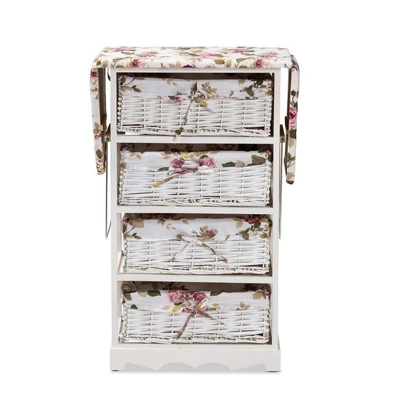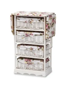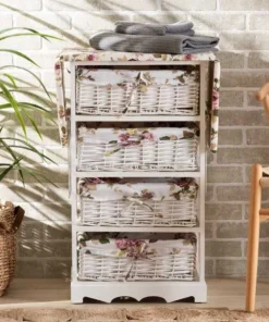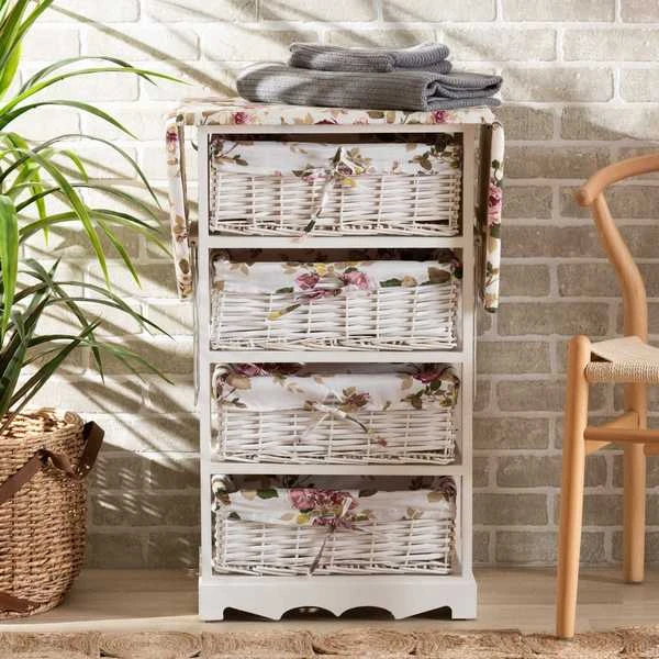The simple yet versatile Lacole storage unit is sure to become a household favorite. This remarkable piece is comprised of a sturdy wood frame fitted with four baskets. The expandable top of the Lacole is padded with plush foam and upholstered in fabric to serve as a convenient ironing station to always look your best. The Lacole will arrive fully assembled and features four storage baskets to organize busy areas of your home. A fantastic solution for all your household needs, the Lacole storage unit is an impressive addition to any space.